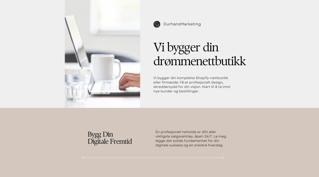 I dag er en god nettside ikke bare et pluss, men en nødvendighet for små og nyoppstartede bedrifter. Men å bygge en nettside kan virke komplisert, teknisk og dyrt. Det er her vi i DurhansMarketing kommer inn. Vi spesialiserer oss på å lage skreddersydde, effektive og brukervennlige nettsider og nettbutikker, spesielt for deg som er ny i den digitale verden. Målet er å gjøre prosessen enkel for deg, slik at du kan fokusere på det du kan best – drive din bedrift.